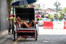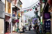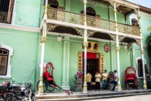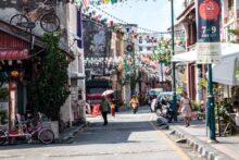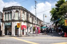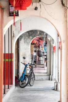 George Town auf der Insel Penang im Norden Malaysias. Zum Frühstück genieße ich eine leckere Nudelsuppe direkt vor der Haustür. Anschließend mache ich mich zu Fuß auf den Weg in die historische Altstadt. Bereits auf dem Weg sehe ich viele zweigeschossige alte Häuser, die teilweise ziemlich verfallen sind. Zwischen den chinesischen kleinen Häusern stehen auch immer wieder Häuser aus der Kolonialzeit, die erhaben neben den kleinen Häusern emporragen. Aus einigen Fenstern wachsen bereits kleine Bäumchen heraus und die Fensterläden hängen schief herab. Und gleichzeitig ist im Erdgeschoß ist ein Restaurant oder ein Shop untergebracht. Hier ist alles viel weiträumiger als vor ein paar Tagen in Melakka, wo es überfüllt mit Touristen war. Mittlerweile sind ja auch die Ferien und Feiertage vorbei und alle müssen wieder zur Arbeit. In dieser Altstadt wird wirklich gelebt im Gegensatz zu Melaka. Hier hat der Barbier seinen Laden neben einem Ketten Händler und chinesische Medizin gibt es neben dem Shop für Sanitärbedarf. Ich schaue mir einige chinesische Tempel an und auch ein paar Moscheen sind dabei. Und ganz nebenbei buche ich in einer Travel Agency meinen Weiterflug nach Borneo in zwei Tagen. Die Stadt George Town ist auch berühmt für viel Street Art Graffitis. Es ist schon toll, was sich die Künstler haben einfallen lassen.