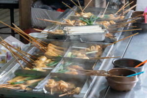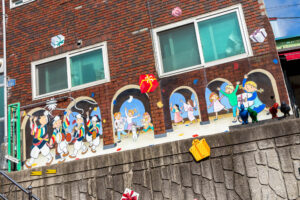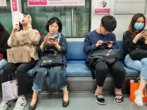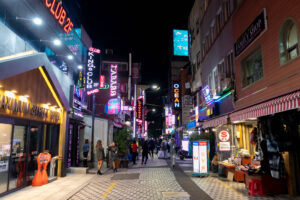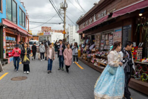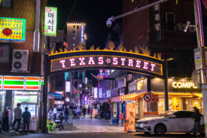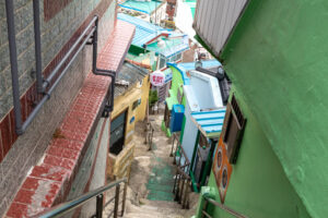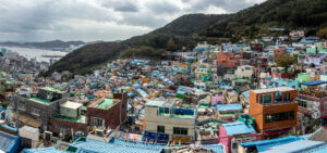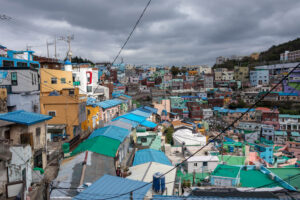 Ich entschließe mich meine Pläne zu ändern und statt der Wanderung zum Culture Village Gamcheon zu fahren. Dieses Stadtviertel liegt direkt an einem Berg und sollte eigentlich vor einigen Jahren „entwickelt“ werden. Das hätte bedeutet dass hier alle Häuser abgerissen worden wären und stattdessen „schöne“ neue Wohnblocks entstanden wären. Aber eine Künstlergruppe hatte sich entschieden auf ihre Art dieses Viertel zu „entwickeln“. Jetzt gibt es hier an den Hauswänden bunte Gemälde, oder auch aus einem Schilderwald erstellten Baum an einer Hauswand. Viele Cafés und Restaurant und natürlich Souvenir-Shops reihen sich hier hintereinander. Immer wieder führen steile Treppen den Hang hinauf oder wieder hinab. Die Aussicht von hier oben ist prima. Man kann bis zu den „Dicken Pötten“ im Hafen schauen. Zu Fuß mache ich mich dann auf den Weg zum Busan Tower. Der für einen Fernsehturm ziemlich klein aussehende Turm steht auf einem kleinen Hügel. Von hier oben kann ich den Hafen wunderbar überblicken. Die Stadt Busan ist ziemlich groß. Ihre 3,5 Millionen Einwohner verteilen sich auf eine ziemlich große Fläche zwischen den unzähligen Hügeln der Stadt. Da ich bis zu einem Abendessen noch Zeit habe, fahre ich noch zu einem Miniatur-Eisenbahn-Land. Aber als ich dort ankomme, ist in dem Gebäude kein Miniatur-Eisenbahn-Land mehr, sondern eine LED-Kunstausstellung mit einem enormen Eintrittspreis. Ach wie gut, dass direkt nebenan der Shinsegae Department Store steht. Dieser Store ist der größte Warenhauskomplex der Welt. Neben unzähligen Luxus-Stores gibt es hier auch Spa, eine Eisbahn im 4.Stock, ein Museum, und und und ….. Und prompt verlaufe ich mich total, da die Lagepläne nur in koreanisch beschriftet sind. Zum Abendessen mache ich mich auf den Weg in die Nähe meines Hostels in die Chinatown. Die Straßen dieser Gegend sind Tagsüber mit Restaurants übersäht und abends macht sich hier scheinbar ein ganz anderes Gewerbe breit. In der Texas-Street warten viele Frauen aus Osteuropa auf Kundschaft vor den Bars. Mein Abendessen gibt es dann ein paar Straßen weiter.