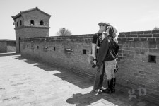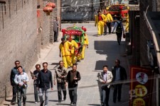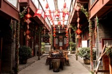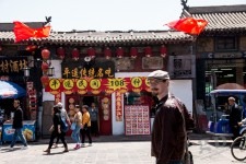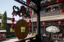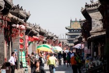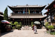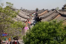 Wir starten in den Tag mit einem Frühstück auf der Stadtmauer und einem anschließenden Spaziergang auf der Mauer vom Süd-Tor zum oberen West-Tor in bestem Sonnenschein. Von hier hat man einen schönen Einblick in die Höfe der Häuser. Bei einem anschließenden Tee schauen wir dem Treiben auf der Straße zu. Da vor einigen hundert Jahren Pingyao 平遥 eine Bankenmetropole war, findet man in der Altstadt auch einige alte Bankhäuser, die nun als Museum dienen. Es gibt sogar mehrere Museen für historische bewaffnete Geldtransporte.