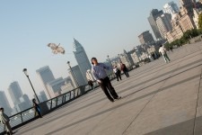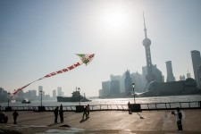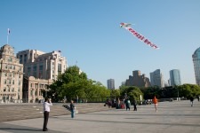 Um 5.30Uhr klingelt heute wieder einmal der Wecker. Wir wollen uns am frühen Morgen die TaiChi-Sportler am Bund vor der beeindruckenden Wolkenkratzer-Kulisse anschauen. Um kurz nach 6 sind wir dann auch am Flussufer, aber von Tai-Chi und QiGong ist keine Spur. Dafür sporten Läufer die Promenade entlang. Vor uns läßt ein älterer Herr einen Drachen steigen, und etwas weiter ist noch ein Drache. Und es werden immer mehr kleine und große Drachen. Wir besorgen uns ein kleines chinesisches Frühstück aus dem Supermarkt und genießen die großen und kleinen, die einfarbigen und die bunten Drachen über unseren Köpfen während die Sonne aufgeht.