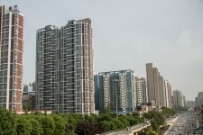Auf dem Weg hängen wir immer wieder in Staus fest. Zwei Verkehrsunfälle bremsen uns aus. Wir fahren aber auch an ziemlich neuen und auch gerade im Bau befindlichen Hochhaussiedlungen vorbei.