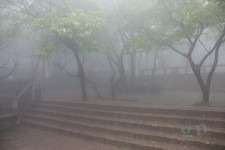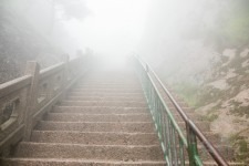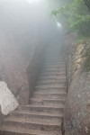 Aber da der Nebel noch immer nicht verschwunden ist und weiter unten sogar in nebligen Regen wechselt, sehen wir von der wundervollen Kulisse des Huangshan leider nichts. Die Nebeldecke reißt erst wenige Meter oberhalb der Talstation auf. Und wir sind mehr als 1500m auf steilen engen Treppenstufen abgestiegen. Unsere Beine brennen. Für den Rest des Tages steht ausruhen auf dem Programm.