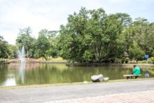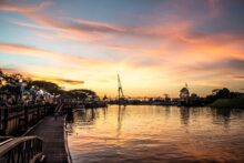Den Sonnenuntergang genieße ich an der Waterfront in Kuching. Hier ist es richtig belebt und viele Stände sind aufgebaut. Sie verkaufen Essen, Ice Cream und leckeren Kuchen.