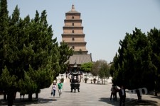 Nach dem Frühstück um ca 08.00Uhr ziehen Barbara und Ich in die Stadt, während Collin im Hotel bleibt um seine Erkältung auszukurieren. Barbara und ich schauen uns als erstes den Bell-Tower in der Nähe an und während Barbara anschließend noch durch die Shopping-Malls schlendern möchte, mache ich mich auf den Weg zur großen Wildgans-Pagode im Süden außerhalb der Stadtmauern. Ich versuche mich mal mit der U-Bahn von Xi’an die hier Metro heißt. Auch hier geht es erst durch einen Sicherheits-Check. Ein Ticket kaufe ich an einem Ticket-Office für 2 Yuan. Das ist ziemlich günstig. Als ich auf den Bahnsteig komme, denke ich der Zug steht bereits dort, aber das Gleisbett ist durch eine Plexi-Glas-Wand mit Schiebetüren vom Bahnsteig abgetrennt. Der Zug fährt ein und die Türen öffnen sich. In der Bahn gibt es sogar eine elektronische Anzeige des Streckenverlaufs und Durchsagen auf chinesisch und englisch. Alles ist sehr modern und absolut sauber. Hier liegt nicht mal ein Fetzen Papier in der Metro.