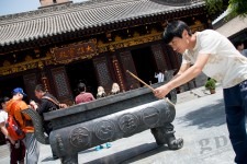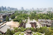 Auf dem Weg zur Pagode komme ich noch an einem Straßen-„Künstler“ vorbei, der Kunststücke mit seinen Affen vorführt. Die Wildgans-Pagode ist ein buddhistischer Tempel mit einem hohen Turm im Zentrum. Von oben habe ich eine wundervolle Aussicht in alle Himmelsrichtungen. Es ist beeindruckend diese Großstadt mit seinen unzähligen Hochhäusern und vielen wunderschönen Parkanlagen von Oben zu betrachten.