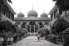 Beim Schlendern sehen wir durch einen Hofeingang eine Moschee und werden hereingebeten. Die ruhige Atmosphäre ist ein toller Kontrast zu dem lauten Straßenleben vor der Tür. Als wir ein paar Fotos machen, möchte uns ein kleines Mädchen gar nicht mehr gehen lassen und klammert sich an Barbara und spielt gleichzeitig mit Ihrer Kamera. Oh wie süß!