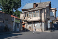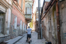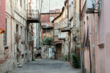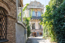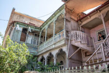 Frühstück gibt es heute morgen in einem der kleinen Café in der Altstadt. Am Freedom Square startet pünktlich um 12 Uhr unsere Free Walking Tour. Bei dieser Art Tour, die es in vielen Städten gibt, bekommt der Stadtführer eine freiwillige Spende für die Tour. Und am Ende bleibt für den Reiseführer mehr übrig und wir bekommen eine tolle Führung. Ich finde das ist eine tolle Sache. Unsere Stadtführerin heißt Tamar und erklärt uns nicht nur die Geschichte der Stadt mit den vielen Eroberungen und Zerstörungen der Stadt, sondern auch, wie einfach das System des öffentlichen Nahverkehrs ist. Unsere Stadtwanderung führt uns als erstes in die Altstadt. In diesem Teil sind noch nicht viele Gebäude renoviert. Die Häuser haben Balkone und Außentreppen aus Holz und viele hängen ziemlich schief an den Gebäuden. Das kennen wir doch auch von unserer Wohnung in Tbilisi. Aber die meisten der schiefen Treppen und Balkone werden noch genutzt. Irgendwie müssen die Bewohner ja auch in ihre Wohnungen kommen. Wir kommen auch an unserer Wohnung vorbei. Bei uns hängt ja auch der Haussegen bzw die Treppen schief.
