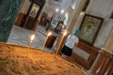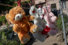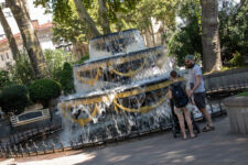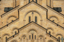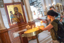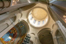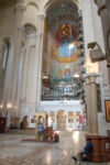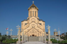 Pappsatt machen wir uns dann in der Nachmittagshitze auf einen weiteren Spaziergang zur Sameba-Kathedrale, die mit ihrem goldenen Dach hoch oben über der Stadt in der Sonne leuchtet. Die Kathedrale ist erst wenige Jahre alt und im Stil der alten orthodoxen Kirchen gebaut. Mit dem Gesang der Mönche, dem Weihrauch, den Kerzen und den bunten Fresken ergibt es wieder eine tolle Atmosphäre im Inneren der Kirche. Und außerdem ist es auch angenehm Kühl. Auch Anja kauft sich eine Kerze und entzündest diese vor einem der Marienbilder. Auf dem Rückweg kaufen wir für Ronja noch ein Malbuch, damit sie nicht immer die Servietten im Restaurant nutzen muss. Und kurz vor unserem Zuhause treffen wir noch eine Gruppe Clowns und Ronja bekommt noch ihr Abendprogramm geliefert.