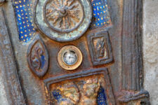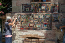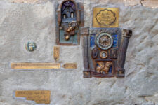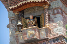 Apropos schief: gleich um die Ecke unseres Apartments beginnt der renovierte Teil der Altstadt mit Bars und Restaurants und einem ziemlich interessanten Uhrenturm. Der Turm ist vor einigen Jahren aus alten Steinen und Stahlträgern von kaputten Gebäuden und Brücken gebaut worden und mit vielen bunten Fliesen und Malereien versehen. Zu jeder vollen Stunde kommt ein Engel aus dem Turm und schlägt an eine Glocke. Und in sichthöhe der vorbei gehenden Menschen ist im Mauerwerk eine kleine Uhr eingelassen, die so groß ist wie eine kleine Armbanduhr. An diesem Turm gibt es so viele kleine Details zu entdecken.