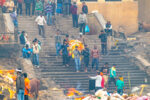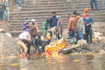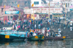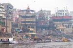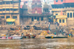 Später mache ich noch eine zweite Bootsfahrt, da ich mir die Verbrennungs-Ghats noch einmal am Tag anschauen möchte. Es brennen wieder ein paar Feuer, aber ansonsten sieht es nach viel Asche und Schlamm aus. Und nach viel Müll. Alles andere wie man sich eine würdevolle Bestattung vorstellt. Beeindruckend ist allerdings die Menge an Holz, die hier für die Verbrennungen gelagert wird.