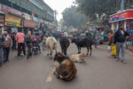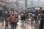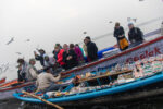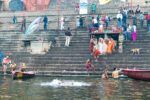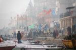 Heute heißt es mal sehr früh aufstehen. Um 6:15 Uhr werde ich vom Rudermann des gestrigen Abends abgeholt. Es geht wieder auf eine Bootsfahrt, aber dieses Mal in die andere Richtung. Ich möchte mir das Treiben am Heiligen Fluss Ganges am frühen Morgen anschauen. Die ersten Kühe sind schon wach und stehen auf der Straße herum. Der Verkehr ist heute morgen fast nicht existent. Über dem Fluss liegt ein leichter Nebel und alles ist in ein leichtes grau gehüllt. Ein paar Fischer sind auf dem Ganges mit ihren Booten unterwegs und natürlich auch die ersten Touristen die das gleiche Ziel haben wie ich.