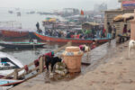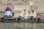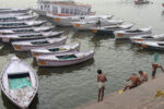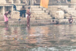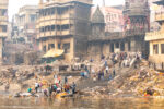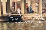 Die ersten Pilger und wahrscheinlich auch Einwohner Varanasis steigern die Stufen zum Fluss hinab und beginnen mit ihrem Ritual: Die Waschung im Heiligen Fluss Ganges. Mir diese Waschung wäscht man sich alle Sünden vom Leib. Und bei dem dreckigen Wasser bestimmt einige Bakterien und Viren auf den Körper. Einige Priester haben Feuer auf den Plattformen angezündet und beten zu ihren Göttern. Weiter Flussabwärts waschen die Wäscher die Wäsche der Hotels und Gästehäuser im Fluss. Die Paläste am Ufer sind mittlerweile etwas verfallen, aber künden noch von einstigen prächtigen Herrschern. Einige Boote verkaufen Snacks für die vielen Möven, denn schließlich ist es auch eine Gute Tat die Tiere zu füttern.