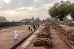 Der erste Plan war um etwa 14 Uhr zu starten. Das würde dann auf 15 Uhr verschoben und da so viel Verkehr auf der Straße ist, fahren wir dem Auto mit einem Tuktuk entgegen. Im Auto sitze ich dann um 16 Uhr. Läuft also. Aber ich hab ja Zeit. Der erste Stop ist Sarnath. Hier hat der erste Buddha Siddharta seine erste Predigt gehalten. Aus diesem Grund wurde hier vor Jahrhunderten bereits eine Stupa, eine Art Tempel gebaut. Mittlerweile stehen hier aber nur noch Ruinen, oder besser gesagt nur noch die Grundmauern der Tempel und daneben ein großes Monument, dass aussieht wie ein riesiger Fingerhut aus Backsteinen gebaut. In der näheren Umgebung stehen dann natürlich noch weitere buddhistische Tempel in verschiedenen Baustilen.