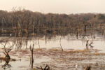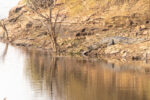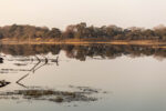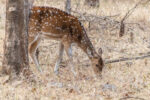 Zu Beginn der Tour gibt es gleich eine Ansage, dass wir uns zuerst auf die Suche nach einem Tiger machen und später die anderen Tiere im Park suchen werden. Und so brausen wir auch wieder mit einem Afenzahn durch den Park. Rechts und Links lassen wir die Hirsche, Rehe und Pfauen einfach liegen. Die Landschaft in diesem Teil des Parks ist ganz anders als bei der gestrigen Safari. Es gibt zwar wieder niedrige Bäume und Büsche, aber auch viele ausgetrocknete kleine Seen und Flussbetten. Ein paar der Flüsse führen aber noch ein kleines Rinnsal Wasser in Richtung eines großen Sees. Die Landschaft ist sehr abwechslungsreich. Wir entdecken auch immer wieder frische Spuren eines Tigers. Das sagt zumindest unser Guide. Und wir brausen weiter durch einen Wald ohne Laub, denn es ist ja Winter. Insgesamt ist es ziemlich trocken. Die Route ist ziemlich staubig und dementsprechend sind wir auch ziemlich schnell in Staub eingehüllt. Auf dieser Route gibt es auf jedenfall viel mehr Tiere, als auf der gestrigen Route. Dafür halten wir nur sehr selten bei einer Herde Tiere an, denn wir rasen ja hinter einem Tiger hinterher. Nach etwa 2,5 Stunden geht es dann auf den Rückweg zum Eingangstor. Jetzt haben wir auch Zeit für andere Tiere zu Stoppen. Dafür hält unser Fahrer immer so, dass die Tiere hinter einem Baum oder Busch verschwinden. Ein paar Meter weiter vor oder zurück und jeder könnte die Sambalhirsche, Gazellen oder Rehe in voller Größe sehen.