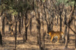 Kurz vor Ende der Tour sehen wir vor uns einige Jeeps und Trucks am Rand stehen. Unser Fahrer gibt mal wieder Gas: „Tiger! Tiger!“ Also doch! Es gibt hier also wirklich Tiger! Der Tiger ist etwa 200 oder 300m entfernt. Aber es ist ein Tiger. Jetzt können natürlich alle glücklich sein. Unser Guide fragt auch jeden Einzelnen mehrfach, ober er oder sie auch so glücklich ist. Dabei hat der Guide doch garnichts zur Sichtung beigetragen.Ich freue mich schon auf eine heiße Dusche und ein leckeres Frühstück, denn ich bin ganz schön durchgefroren.