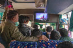 Und wieder klingelt der Wecker um 6.30Uhr. Ich möchte heute noch einmal einen Versuch starten und einen Tiger auf einer Safari zu Gesicht bekommen. Ich werde wieder pünktlich um 7Uhr abgeholt. Dieses mal mit einem umgebauten LKW mit etw 20 Sitzplätzen. Ich steuere direkt die letzte Reihe an. Aber der Fahrtwind ist so eisig, dass ich mich bei der nächst besten Gelegenheit wieder weiter nach vorne verziehe. Heute Morgen geht es auf eine andere Route durch den Park. Die Route Nr. 4. Am Eingang des Parks müssen noch ein paar Formalitäten geregelt werden. Die Zeit nutzt ein kleiner roter Vogel und gesellt sich zu uns. Er setzt sich nur wenige Zentimeter von uns entfernt auf das Geländer des Busses und schaut sich neugierig im Bus um. Ein witziger kleiner Vogel.
