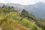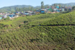 Heute klingelt mein Wecker schon um 7 Uhr. Ich will mit dem Bus nach Munnar fahren und die Haltestelle ist einige Kilometer entfernt. Für 230 Rupees fährt mich ein Taxi zum Busbahnhof. Hier gibt es auch einige Shops, an denen ich mir noch Wasser und ein Frühstück kaufen kann. Aber erst kaufe ich ein Ticket. Als ich in der Warteschlange am Ticketschalter stehe kommt ein Mann herein und ruft „Munnar! Munnar!“. Der andere Mann am Ticketschalter, fragt an der Reihe vorbei, ob ich nach Munnar möchte. Ich nicke. Er gibt mir ein Zeichen mit dem „Munnar-Rufenden-Mann“ mitzugehen. Na das ging ja mal schnell. Ich hab noch nicht einmal ein Ticket und schon sitze ich im Bus. Ach, wie war das mit Frühstück? Gut das ich noch Kekse im Rucksack habe. Aber bis es losgeht, dauert es noch bestimmt 30 Minuten, denn der Bus füllt sich erst langsam. Aber wer erst einmal im Bus sitzt, der verläßt ihn auch nicht mehr. Es handelt sich übrigens um einen „Local-Bus“. Der Bus hat ausser der Frontscheibe und der Heckscheibe keine Fenster an den Seiten. Mann kann nur eine Art Metall-Rollo herunterlassen. Aber der Fahrtwind ist ja auch ziemlich erfrischend. Mein Ticket für die 5,5Std Fahrt kostet 114 Rupees. Der Bus hält noch einige Male in der Stadt und auf der Strecke und so ist der Bus auch schnell gefüllt. Auch die Stehplätze sind schnell vergeben. Bis wir die Stadt oder besser die aneinandergereiten Städte und Dörfer verlassen haben dauert es bestimmt 1,5 bis 2 Stunden. Jetzt wird es grüner und der Bus fährt durch Wälder in eine immer hügeliger werdende Gegend. Immer wieder machen wir einen Halt um Passagiere aufzunehmen. Erst nach 3,5 oder 4 Stunden machen wir eine 10 minütige Pause. Jetzt wird es Zeit für ein spätes Frühstück aus Samosas und Bananen. Bald sehen wir auch schon die ersten Tee-Plantagen an den Hängen und auch die ersten Hotels und Gästehäuser. Die Tee-Felder sehen aus wie Felder, die nur aus etwa 1,20m hohen Büschen oder Häcken bestehen und von einem Wirrwarr von schmalen Pfaden durchzogen werden, damit die Teepflücker durch die Sträucher gehen können um die frischen Teeblätter zu ernten.