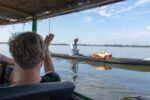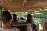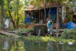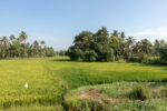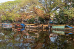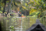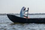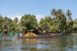 Um 8 Uhr geht es mit ein paar anderen Gästen aus dem Hostel mit einem Tuktuk zum Fähranlager einige Kilometer entfernt. Ich habe gestern im Hostel eine Kanutour durch die Backwaters gebucht. Als erstes geht es aber mit der Fähre in eines der Dörfer im Kanalsystem der Backwaters. Die Menschen sind schon bei der Arbeit und waschen im Wasser ihre Kleidung oder Angeln. Hinter den Dämmen der Kanäle liegen weite Reisfelder. Wir steigen an einem Fähranleger aus und nach einem kleinen Fußmarsch kommen wir in einem kleinen Dorf direkt am Wasser an. Jetzt gibt es erst einmal ein Frühstück bevor alle Teilnehmer, immerhin etwa 30 Personen. Wir werden auf kleine Kanus für 4-6 Personen verteilt. Jetzt geht es mit den Kanus in die kleinen Kanäle. Paddeln müssen wir nicht selbst, denn wir haben einen Paddler und Steuermann an Board. Ich teile mir ein Kanu mit zwei Architektur-Studentinnen aus Bochum, zwei Medizin-Studenten aus der Schweiz und einem Franzosen. In den schmalen Gassen ist kein Motorgeräusch zu hören und über uns ragen Palmen über das Wasser. Ab und zu kreuzen wir eine der großen Wasserstraßen und ein paar Fischer kreuzen unseren Weg. Oder auch mal ein Kanu, beladen mit Kokosnüssen. Da können wir uns in einer Paddelpause auch mal eine Kokosnuss gönnen und eine Flasche Toddy gleich dazu. Toddy ist ein selbst gebrautes Palm-Bier. Es riecht ein wenig wie Hefeklöße und schmeckt süß-säuerlich. Das Palmbier wird morgens gebraut und gärt dann über den Tag und wird frisch getrunken. Einige der Kanäle sind dicht mit den Wasserlilien bewachsen. Da müssen wir dann doch mal mit einem Paddel unserem Steuermann helfen bevor es dann zum Mittagessen geht. Es gibt ein indisches Tali, also Reis, Suppe, Curry, Salat und Joghurt auf einem Bananenblatt serviert. Praktischerweise muss dann niemand die Teller abwaschen. Und lecker ist das Mittagessen auch noch! Nach dem Essen soll man sich ja ein bisschen die Beine vertreten. Wir lassen uns noch ein bisschen durch die Kanäle rudern bevor wir zum Abschluss noch einen kleinen Spaziergang zum nächsten Fähranleger machen um mit der Fähre wieder zurück in die Stadt Alleppey zu fahren. Was für ein entspannter und relaxter Tag. Genau das richtige bei etwa 35°C Außentemperatur. Auf dem Wasser hat die Sonne richtig gebrannt. Zurück am Hostel gehe ich in das Strandcafe gegenüber und genieße einen leckeren Masalla-Tee. Nach kurzer Zeit stößt noch ein junges Paar aus England dazu, die ich auch auf der heutigen Kanu-Tour kennengelernt habe. Beim Abendessen erzählen wir uns Geschichten von unseren Reisen. Gut dass es nebenan auch ein paar kalte Bier zum Sonnenuntergang gibt.