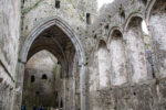 Bei der Führung erfahre ich dann, dass es sich hier nicht um ein Schloss handelt, sondern ursprünglich wurde hier eine Kathedrale bzw eine Kabelle gebaut, die später mit Wehrtürmen und Festungsmauern ergänzt wurden. Von der Kathedrale stehen nur noch die großen Mauern. Das Dach fehlt und Fenster sind auch nicht mehr vorhanden. Aber dafür sind die beiden großen Wehrtürme noch erhalten. Und ebenso die Kathedrale. Um das Gotteshaus herum befindet sich ein alter Friedhof. Noch immer werden hier die Menschen aus dem Dorf beerdigt. Deshalb stehen hier auch viele Keltische Kreuze: Ein christliches Kreuz mit einem Ring in der Mitte des Kreuzes. Die alte Kapelle ist noch am besten erhalten. Hier ist der Einfluss der alten keltischen Götter auf die christliche Kirche gut sichtbar: An den Wänden und über den Torbögen sind die Köpfe von Tieren und anderen Menschen zu sehen. Von den Deckenfreskos sind leider nur wenige Bruchstücke erhalten. Und weiter geht’s in Richtung Südwesten.