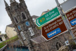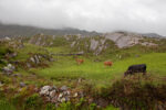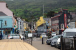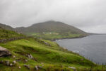 Mein nächster kurzer Halt für einen Kaffee ist Bantry. Hier startet für mich der „Wild Atlantic Way“, der eigentlich schon viele Kilometer weiter im Süden beginnt. Von hier geht es an der Küste entlang in Richtung Norden. An der zerklüfteten Küste sind immer wieder Fischerboote zwischen den kleinen Inseln zu sehen. Später fängt es an zu Regnen und als ich nur weniger Meter weiter die Hügel hinauffahre bin ich im Nebel eingeschlossen. Die Suppe wird immer dicker. Und die Straßen immer schmaler. Erst auf der Nordseite bin ich wieder unterhalb der Wolkendecke unterwegs. Und unter mir rauscht die Brandung des Atlantiks. Auch bei Regen ist es hier wunderschön! Und ziemlich einsam. Deshalb erschrecke ich auch, als mir auf dem kurvigen Weg ein Auto entgegen kommt. Die ältere Frau im anderen Fahrzeug erschrickt aber ebenso. So kurbeln wir die Fenster herunter und quatschen erst einmal ein paar Minuten. Sie war gerade während der Fahrt so in die Gegend und Ihre Musik vertieft, es lief bei ihr gerade die Ramones, dass sie sich so erschrocken hat. Bei mir liefen gerade die Sex Pistols aus den Lautsprechern. Sie erzählt mir noch, dass sie vor einigen Jahren aus den USA hier hergezogen ist, weil es so schön und einsam ist, bevor wir unsere Wege in entgegengesetzte Richtungen fortsetzen.