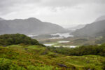 Das Wetter ist heute morgen prächtig: es scheint die Sonne! Also mache ich mich auch früh auf den Weg zu einem Ort der sich „Muckross House“ nennt. Der Weg dorthin führt mich für etwa eine halbe Stunde durch den Killarney Nationalpark. Und passend dazu fängt es wieder an zu regnen. Aber ist trotzdem ziemlich schön hier. Auch die Ausblicke auf die auf die Seen in den Tälern sind toll. Bei Sonnenschein muss das noch viel schöner sein. Kurz vor meinen ersten Ziel, dem „Muckross House“ am „Muckross Lake“ kommt auch wieder die Sonne heraus. Perfekt!