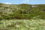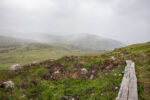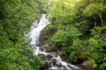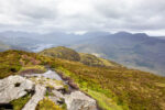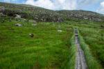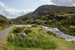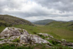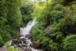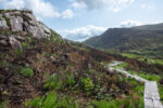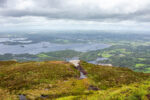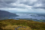 Der erste Teil führt durch die Parkanlagen des Landsitzes. Bevor ich dann vor dem „Torc Fall“ Wasserfall stehe. Hier fällt einer Menge Wasser herunter. An dem Flüsschen geht es weiter bergan bis irgendwann der Wald plötzlich vorbei ist. Jetzt sehe ich vor mir nur noch Graslandschaft und Felsen durch den sich das kleine Flüsschen schlängelt. Und dazu kommt der Wind. Es wird immer windiger. Nach einiger Zeit biege ich rechts ab und ab jetzt geht es steiler bergauf auf Holzstufen und Steintreppen. Und mit noch mehr Wind. Und mit noch schönerer Aussicht. Ich beeile mich etwas, da ich in der Ferne einige Regenwolken ausmache. Oben auf dem Gipfel des etwa 500m hohen Berges bläst der Wind so kräftig, dass es anstrengend ist nicht von Weg abzukommen. Aber die Aussicht ist wirklich Geil!