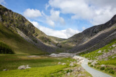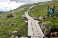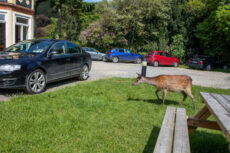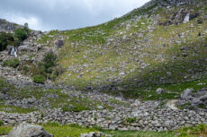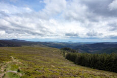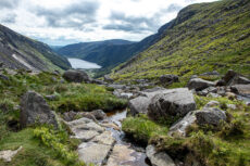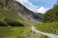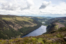 Heute morgen scheint die Sonne! Und ich habe eine Wanderung geplant! Danke lieber Wettergott! Nach einem kleinen Frühstück mache ich mich dann auch bald auf den Weg. Direkt vom Hostel aus geht es los in den National Park. Auf Holzbohlen führt ein Weg durch das Naturschutzgebiet: Sumpf, Wasser, Moose, Gras und mit Moos bewachsene Bäume. Irland ist ziemlich grün. Auch bei Sonnenschein. Hinter dem Upper Lake am Ende des Tals liegen die Ruinen der alten Mine. Hier wurden unter anderem Zink und Silber abgebaut. Riesige Felsbrocken liegen hier zwischen den alten Ruinen. Einige Brocken sind fast so groß wie Häuser. Direkt hinter der Mine geht es in Serpentinen den Berg hinauf. Der Weg führt an einem wilden Bach entlang. Oben angekommen führt der Weg an den steilen Klippen entlang. Hier weht ganz schön der Wind. Der Boden ist hier oben auch ziemlich moorig. Deshalb wurden hier Holzbohlen als Weg verlegt. Verlässt man diese Bohlen, so ist es als geht man auf einem nassen Schwamm. Das hätte ich hier oben gar nicht erwartet. Auch ein paar Rehe grasen hier oben. Die Aussicht von hier oben ist wirklich der Hammer. Ich kann in verschiedene Täler hineinschauen und sehe Seen, Wälder, Dörfer und einige Rehe und Schafe. Meine Route führt mich vom Hauptweg weg über drei weitere Gipfel in der Nähe. An vielen Stellen ist gar kein richtiger Weg erkennbar. Ich laufe auf dem nassen Schwamm auf der Suche nach dem richtigen Weg. Gut das ich eine Karte auf dem Handy habe und so per GPS sehen kann in welche Richtung ich gehen muss. Später wechselt der Nasse-Schwamm-Boden zu einem Teppich aus kleinen Sträuchern. Von hier oben kann ich bis nach Wales schauen. Noch zwei kleine Gipfel und dann geht es wieder bergab. Ziemlich steil führt der Weg in den Wald hinein und dann an einem Wasserfall zurück zu einem Parkplatz. Wie schön, dass es hier einen Stand mit Softeis gibt. Und wenige Minuten später fängt es an zu regnen. Na da hatte ich ja heute richtig Glück mit dem Wetter. Während meiner späten Mittagspause am Hostel kommt ganz langsam ein Reh angeschlichen und schaut mich an. Es kommt ganz nah und freut sich über einen Apfel, Banane und ein paar Nüsse.