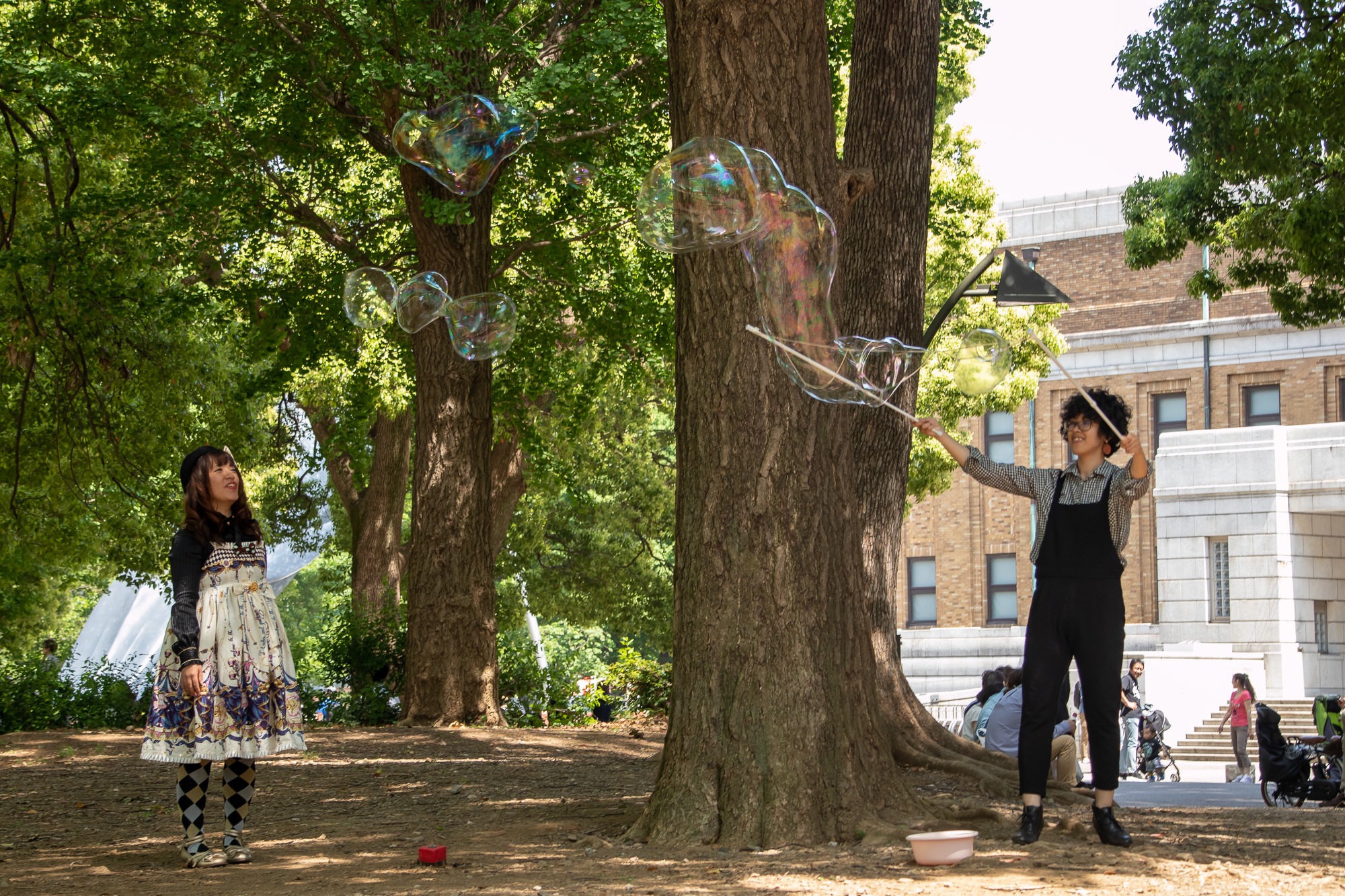 In den Grünanlagen genieße ich dann noch einen mitgebrachten Ice Coffee und schaue ein paar Mädels zu, wie sie mit riesigen Seifenblasen ein paar Kids begeistern.