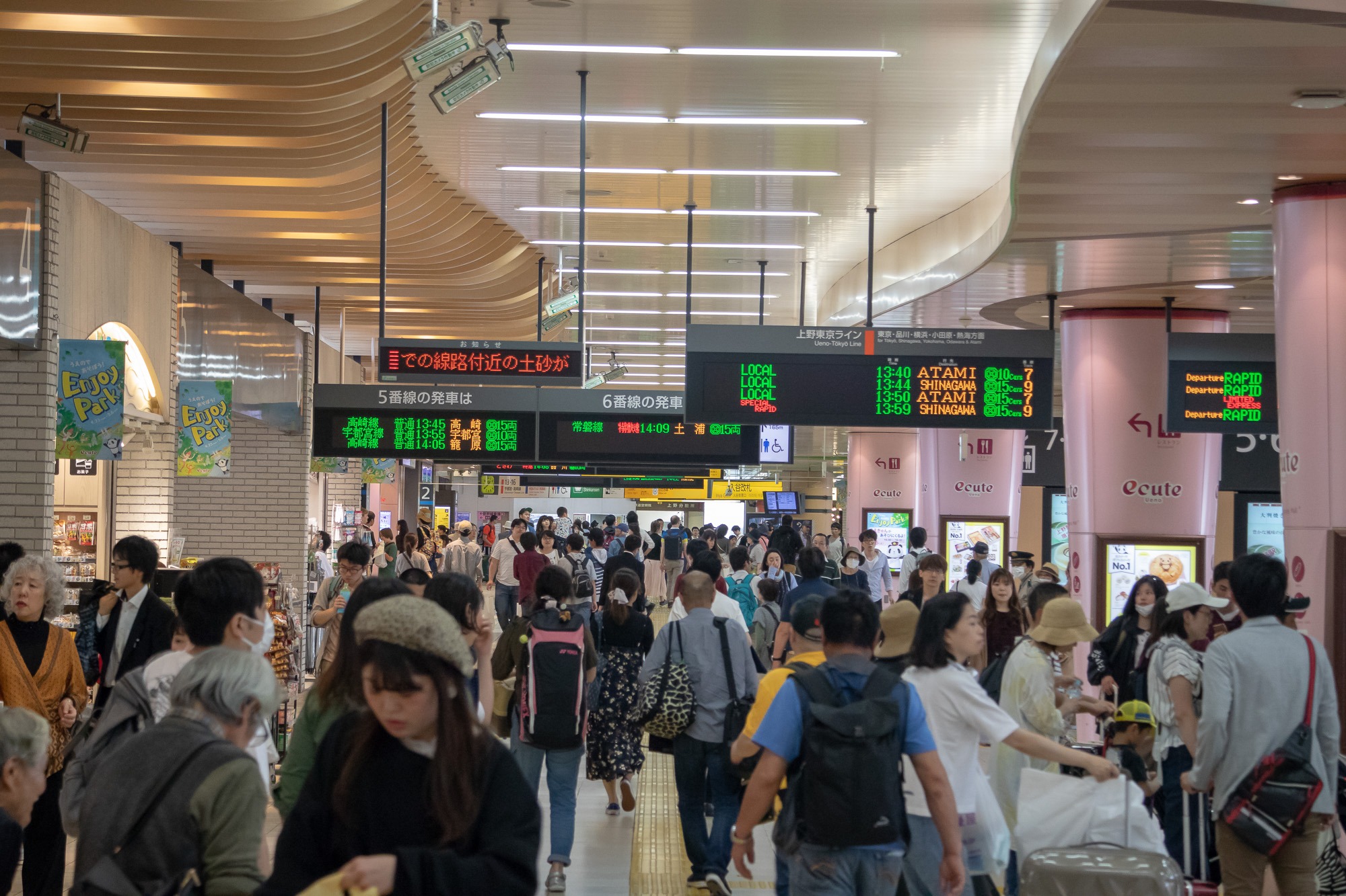 Gegen 8 Uhr wache ich auf. Den Schlaf hab ich wirklich gebraucht. Aus dem Supermarkt nebenan besorge ich mir Brot, Schokocreme und Kaffee für mein Frühstück. Anschließend geht’s wieder in den Bahnverkehr. Heute komme ich schon besser klar. Auch dank Google Maps bekomme ich die passenden Linien und Verbindungen angezeigt. Einige Strecken kann ich mit meinem Japan Rail Pass kostenlos nutzen. Für die anderen Strecken habe ich mir eine „Suica-Card“ besorgt. Auf diese Chipkarte habe ich einige tausend Yen aufgeladen und nun muss ich nur noch beim Betreten und beim Verlassen der Bahnstation meine Chipkarte über den Leser ziehen und der Betrag wird automatisch abgebucht. Total easy. Die Züge sind übrigens oft viele hundert Meter lang. Sehr beeindruckend!
