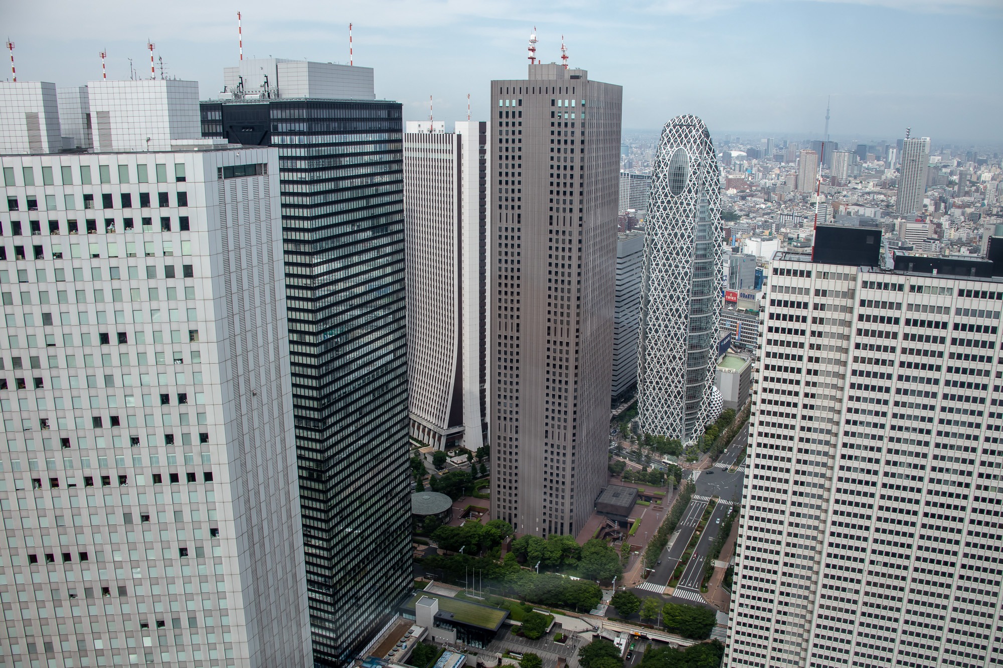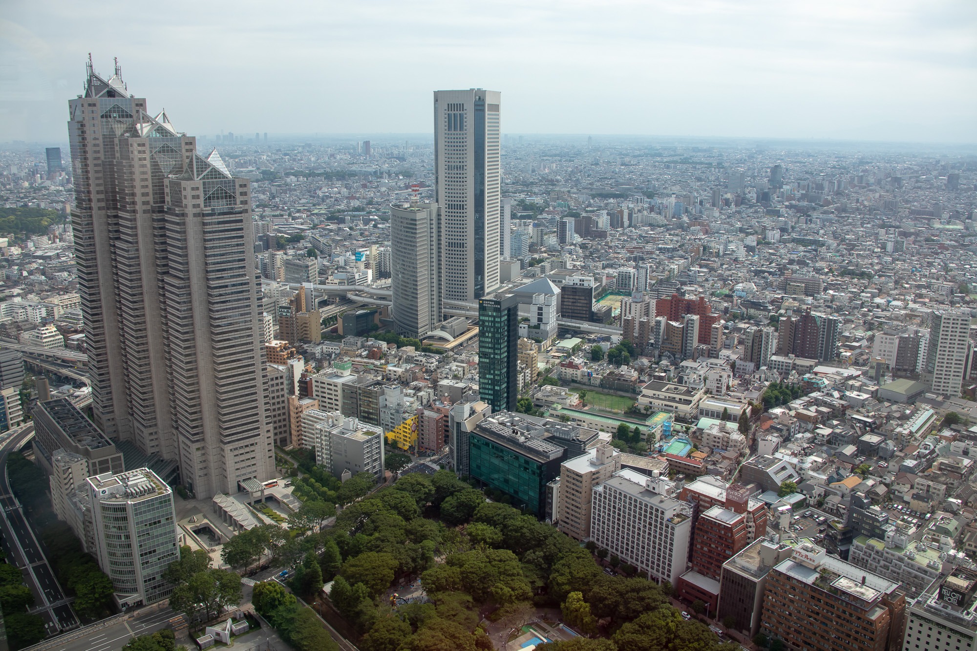 Nach meiner Mittagspause geht’s wieder ins Getümmel: ich mache mich auf den Weg nach Shinjuku zum Government Building. Das Gebäude besteht aus zwei Hochhäusern und jeweils im 45.Stockwerk ist eine Aussichtsplattform. Und dazu auch noch kostenlos. Die Aussicht ist der Hammer! In alle Richtungen, soweit das Auge sehen kann: Häuser, nichts als Häuser, und dazwischen ab und zu grüne Parkanlagen. Tokio hat etwa 10 Millionen Einwohner und die Metropol-Region kommt sogar auf 38 Millionen Einwohner. Berlin hat 3,5 Millionen.