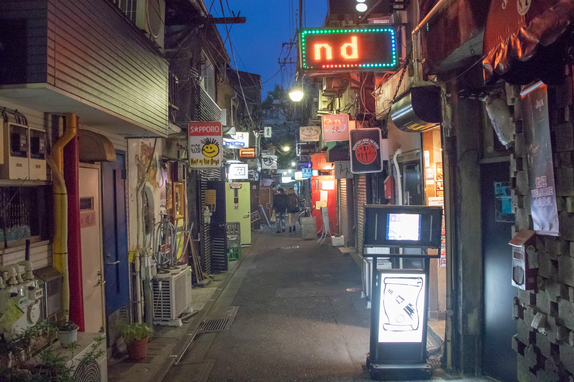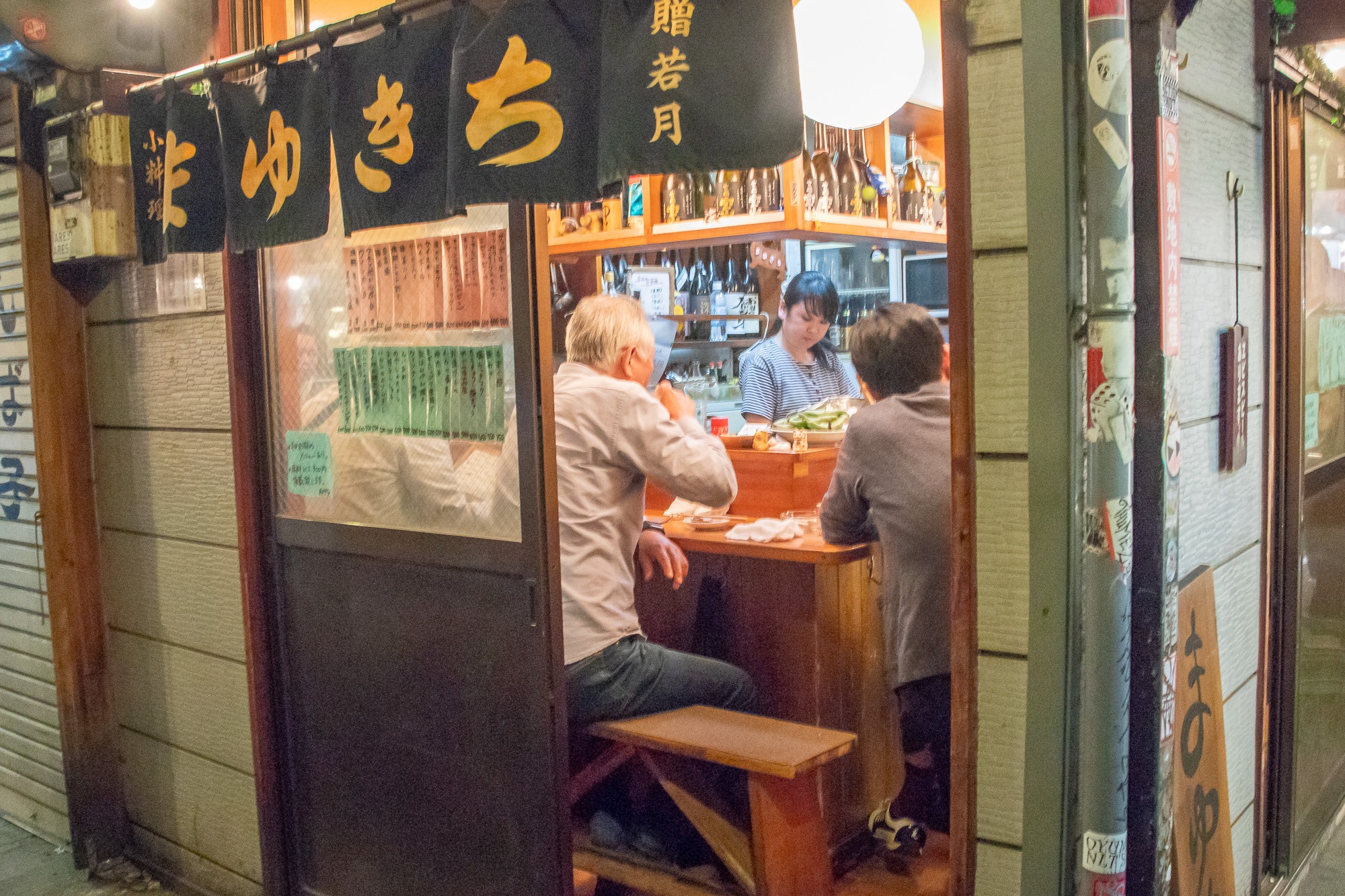 Ich mache einen Abstecher ins „Golden-Gai“ in Shinjuku. Hier gibt es kleine Bars mit Platz für etwa 4-5 Personen. Das ist schon ziemlich cool. Ich bin ein bisschen früh dran und die meisten sind noch geschlossen. Und ausserdem nehmen die meisten Bars noch Eintritt zwischen 500-1000 Yen zzgl Getränke. Ähhh….. Ich geh dann mal um die Ecke in ein kleines Restaurant. Hier bestell ich per Tablet-PC. Sake, Bier und gebratene Hühnerherzen. Die Herzen sind so „lala“ (und außerdem auch nur eine Handvoll), das Bier ist echt lecker und der Sake ist etwa 0,1l groß und hat doch mehr Alkohol als ich dachte.