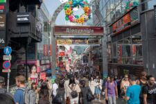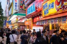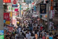 Weiter geht’s nach Shibuya. Im Viertel Shibuya gibt es eine recht große Kreuzung, bei der alle Fußgänger zur gleichen Zeit grün haben und dann gleichzeitig auf die Straße laufen. Das können dann auch mal mehrere tausend Menschen zur gleichen Zeit sein. Das ist schon krass! Und als ich gerade ein Video drehe, fährt eine Gruppe Karts im Super-Mario-Videogame-Style an mir vorbei.