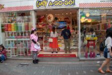 Das in Tokio die Gegensätze meist nicht weit auseinanderliegen bestätigt sich auch hier: gleich um die Ecke liegt das Einkaufsviertel Harajuku. Hier gibt es so ziemlich alles an Klamotten zu kaufen. Und auch jede Menge Kitsch. Hauptsache es ist bunt und irgendwie verrückt. Hier gibt es z.B. auch ein „Mameshiba-Cafe“. In diesem Café warten Haustiere wie Katzen, Vögel, Hamster auf den Besucher, und der kann mit Ihnen Kuscheln und Spielen. Verrückt!
