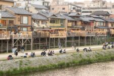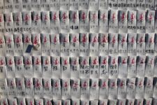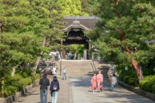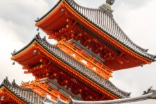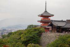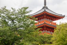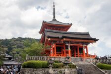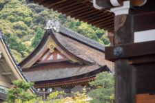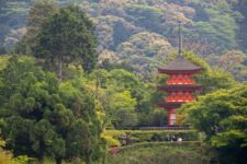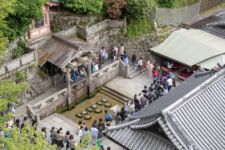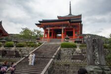 Nach nicht einmal drei Stunden Fahrtzeit komme ich in Kyoto an und mache einen 2km Spaziergang zu meinem Hostel. Das Hostel liegt in einem Viertel mit vielen kleinen Häusern zwischen einem kleinen Bach und auf der anderen Seite einem breiten Fluß. Ich teile mir ein Gästehaus mit einer Familie aus Berlin-Pankow und einem Pärchen aus Kanada. Mein erster Spaziergang führt mich zur Tempelanlage Kiyumizudera. Zur Anlage geht er erst einmal steil den Berg hinauf. Ich nehme eine Abkürzung über einen Friedhof wie sich später herausstellt. Und dann seh ich auch schon die ersten roten Pagoden und Tempelgebäude. Die Anlage ist wirklich riesig und ich verlaufe mich ständig. Aber hier gibt es immer wieder neues zu entdecken: riesige wunderschöne Tore, gerade die Details sind auch wundervoll ausgearbeitet. In den Tempeln gibt es auch einiges zu sehen: hier wird ein kleiner dicker lachender Buddha verehrt, nebenan stehen die Gläubigen lange Schlange um eine große Klangschale zu schlagen und ein kurzes Gebet zu den Göttern zu schicken. Etwas entfernt läuft Wasser aus einer Quelle in der Felswand: die Schlange ist mehrere hundert Meter lang. Nicht weit entfernt sind dutzende Buddhas wie in einer Schulklasse aufgestellt. Alle haben eine meist rote Strickmütze auf. Auf dem Weg zur „leichten-Kinds-Geburt-Pagode“ geht’s an einem großen bronzenen Buddha vorbei. Und dann ist da noch die tolle Aussicht auf die im Tal liegende Stadt Kyoto.