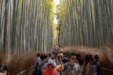 Den Tag beginne ich mit einer Tour zum Kinkagu-Ji Schrein im Norden der Stadt. Und ich mag es kaum glauben: Ich bin zu früh dran. Der Tempel hat noch geschlossen. Nachdem ich in den letzten Tagen häufig zu spät oder kurz vor Schluss bei den Gärten oder Tempeln ankam, hatte ich heute nicht damit gerechnet, dass ich mal zu früh sein werde. Der Kinkagu-Ji Schrein ist auch als Goldener Schrein bekannt, denn er ist in einem strahlenden Gold gestrichen und liegt malerisch an einem großen Teich inmitten einer tollen japanischen Gartenanlage. Viel mehr als den goldenen Schrein und den Garten gibt es hier aber auch nicht zu sehen. Also bin ich nach etwa 30 Minuten wieder auf dem Weg. Und zwar auf dem Weg nach Arahiyama. Dort gibt es eine weitere bekannte Tempelanlage und einen noch bekannteren Bambuswald. Das Areal ist riesig und alle Straßen in der Umgebung sind mit Souvenirs-Shops und Restaurants gespickt. Ich wähle als erstes den Weg zum Bambuswald. Hier ein Foto ohne Menschen zu schießen ist schier unmöglich. Der Weg führt durch den hohen Bambuswald und die langen Bambusstämme ragen steilgerade in den Himmel. Ich mache ein Bild mit einer Langzeitbelichtung von 30 Sekunden um die Menschen, zumindest die, die sich bewegen etwas verschwinden zu lassen. Nur ein paar „Geister“ bleiben übrig. Mein Frühstück genieße ich dann als Picknick in einem ruhigen Park mit Aussicht auf einen Fluss unterhalb. Auf dem Fluss sind einige Boote unterwegs: große Boote mit Gruppen von Touristen an Bord und kleine Paddelboote schippern über den ruhigen Fluss. Hier lässt es sich ruhig ein wenig entspannen.