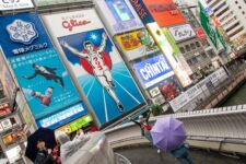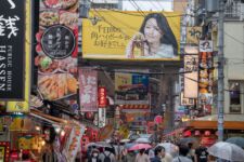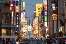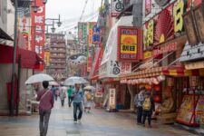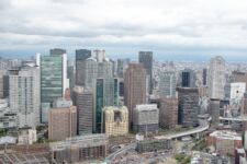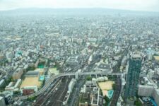 Total beeindruckt von diesem Gebäude geht’s zum nächsten Hochhaus: „Abeno Harukas“. Der Tower liegt im Süden der Innenstadt und ist noch einmal 20 Stockwerke höher als das Umeda Sky Building. Hier geht die Dachterrasse gleich über mehrere Ebenen mit Bäumen, Restaurant und sogar einer Freiluft-Party-Fläche. Base-Jumping könnte man hier auch machen. Schade das es heute Regnet.