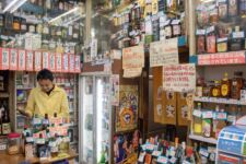 In einem kleinen Sake-Shop mache ich eine kleine Sake-Probe und kaufe mir für das Abendessen eine kleine Mini-Flasche Sake.