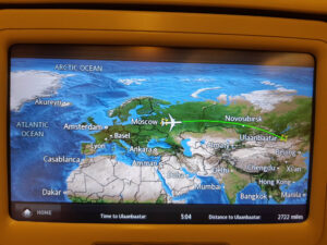 Am Flughafen Berlin-Tegel ist eine Menge los. Es ist Ferienanfang. Es dauert etwa eine Stunde bis ich meinen großen Rucksack abgegeben habe und noch über eine halbe Stunde um durch die Passkontrolle zu gelangen. Aber das ist ja alles kein Problem, denn der Flieger hat eh Verspätung. Es geht erst eine Stunde später los als geplant. In Moskau gibt es eine Zwischenlandung. Wahrscheinlich wird hier der günstige russische Sprit getankt. Alle Fluggäste müssen das Flugzeug verlassen und durch ein Passkontrolle im Transitbereich. Etwa 10 Passagiere haben auf ihren Ticket als Abflugort Berlin stehen und als Ziel Ulan Bator. Eigentlich sollte auf dem zweiten Ticket stehen, dass es von Moskau nach Ulan Bator geht. Die Leute werden am Security-Check abgewiesen und an einen Ticketschalter in der Nähe verwiesen. Ich gehöre auch dazu. 20 Minuten später haben wir alle ein neues Ticket in der Hand und es geht weiter durch den Flughafen wieder zurück zu dem Gate bei dem wir vorher ausgestiegen sind. Aktuelle Verspätung: etwas mehr als eine Stunde. In Ulan Bator habe ich normalerweise 1:45h um meinen Flug nach Seoul zu bekommen. Mal schauen ob das klappt. Mit Verbindungsflügen hab ich ja so meine Erfahrungen: das Gepäck kommt erst drei Tage später oder ich lande in Madagaskar erst 24 Stunden später als geplant.