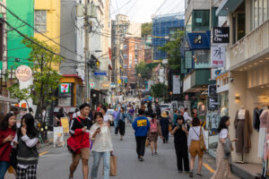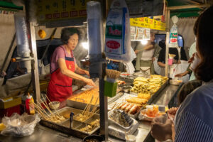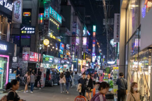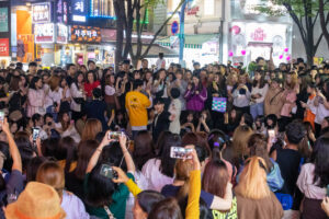 Auf der Suche nach einem Restaurant für mein Abendessen spaziere ich durch die Umgebung meines Hostels. Hier ist ganz schön was los auf den Straßen. Eine Trommelgruppe gibt ein Konzert mit riesigen Trommeln. Und einige K-Pop Fans tanzen und singen auf der Straße. Hunderte Jugendliche umzingeln die jungen Stars und singen sogar mit. Die Straße ist brechend voll. Alle 20 Meter steht eine Gruppe mit Musik- und Lichtanlage. An einigen der zahlreichen Restaurants muss man sogar eine Nummer ziehen um auf die Warteliste zu kommen.