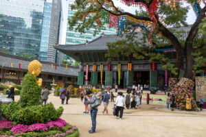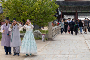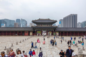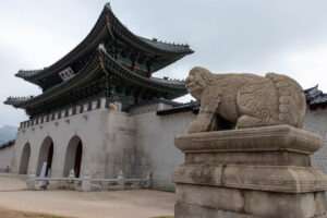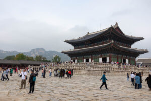 Mein erstes Ziel heute morgen heißt „Gyeongbuk Palace“. Das Wetter ist ziemlich von Wolken verhangen. Aber trocken und angenehm warm.