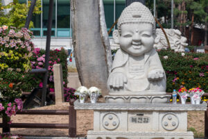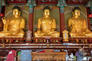 Jetzt wird es aber Zeit für ein Mittagessen. In einem kleinen Restaurant gibt es Bimbimbab, das koreanische Nationalgericht. Reis, Gemüse, eine Sojabohnensuppe und süß , sauer oder salzig eingelegtes Gemüse und Kohl. Hhmmmm… Lecker!