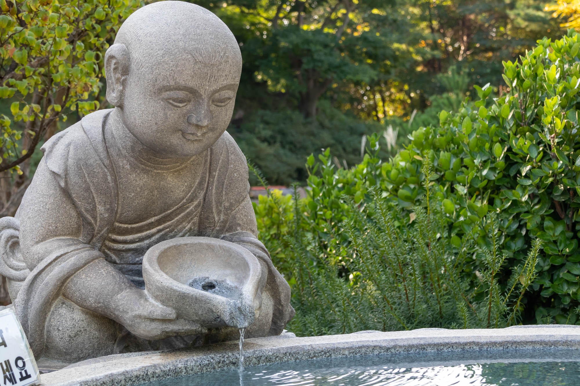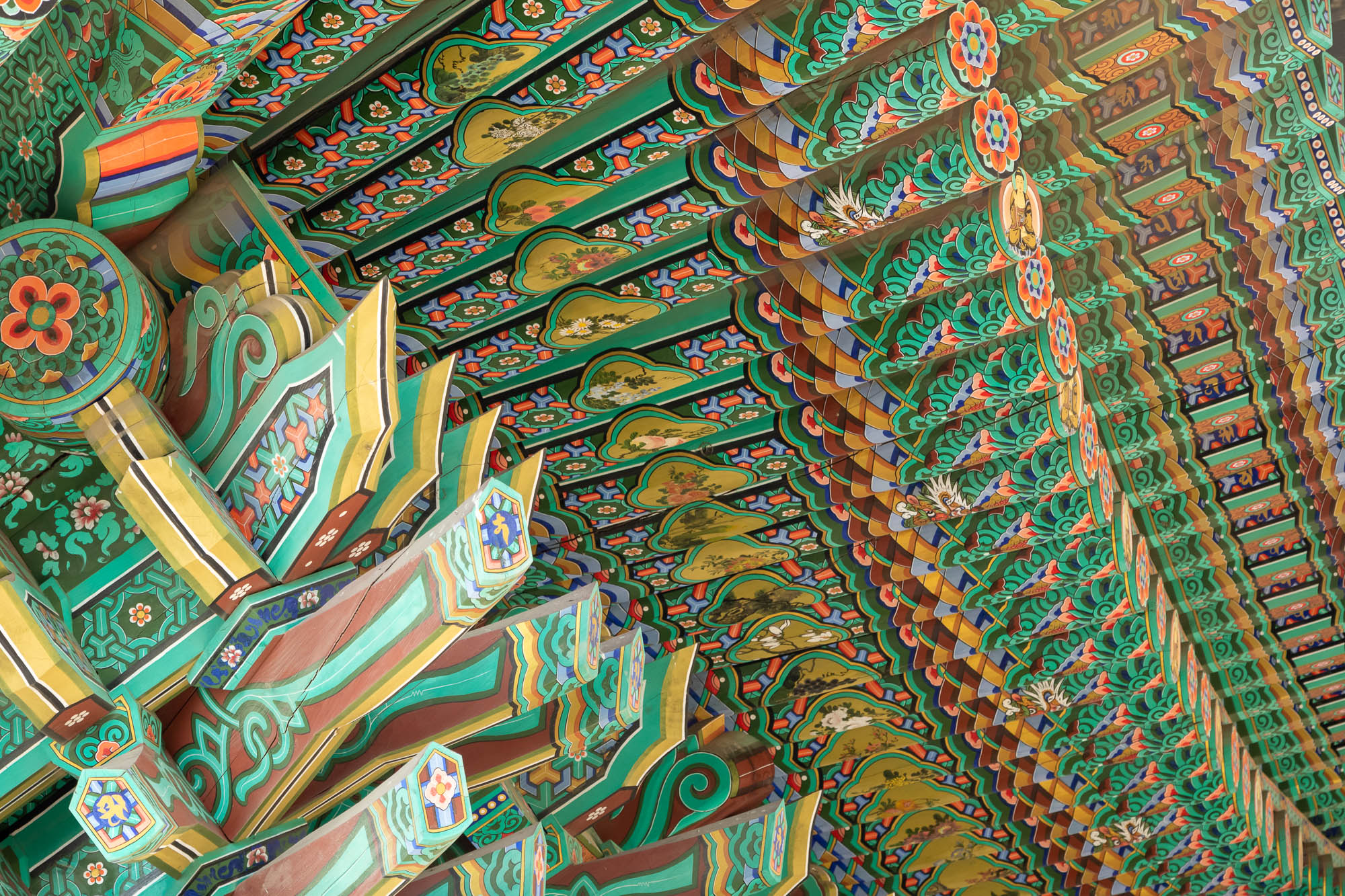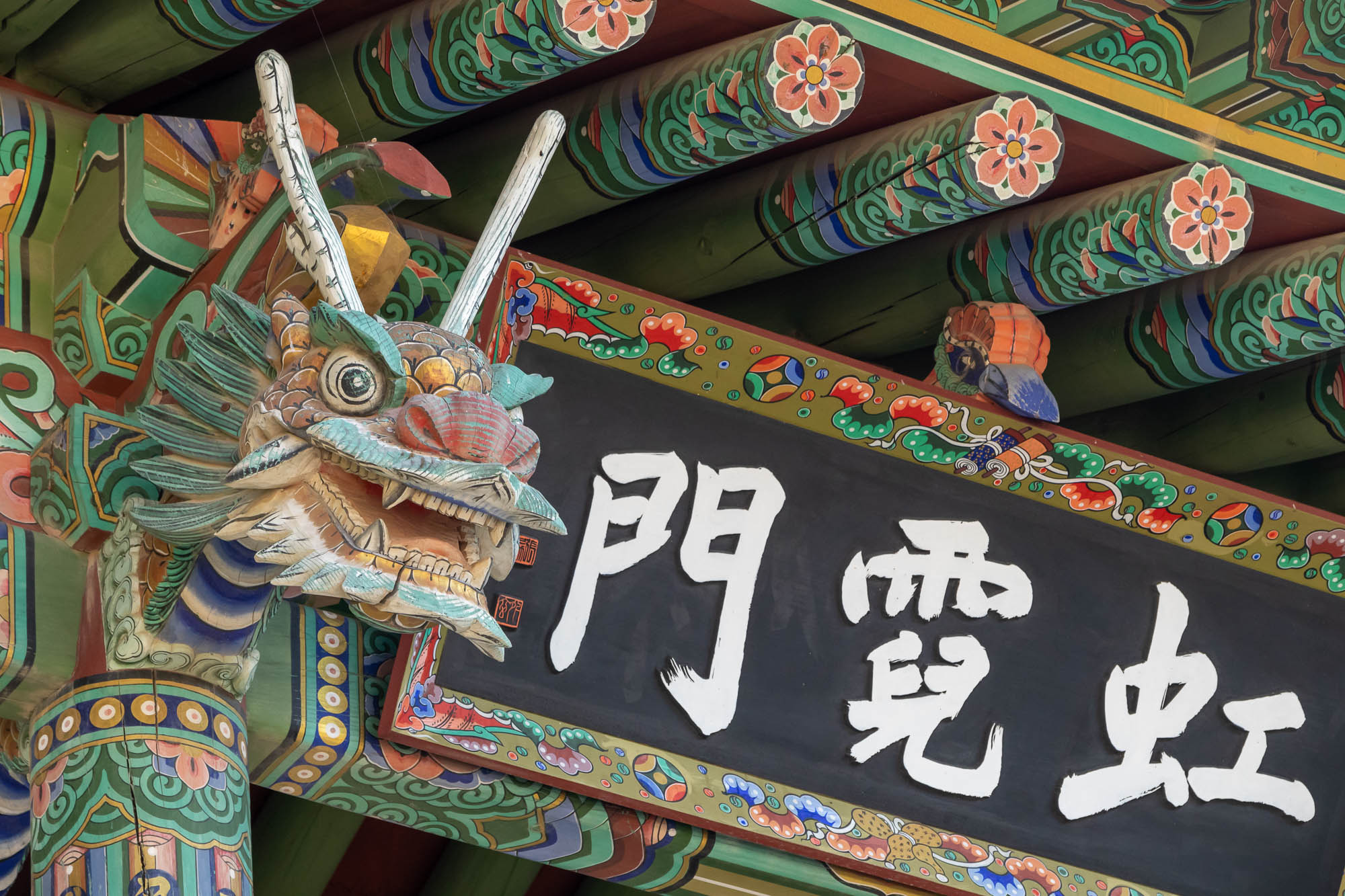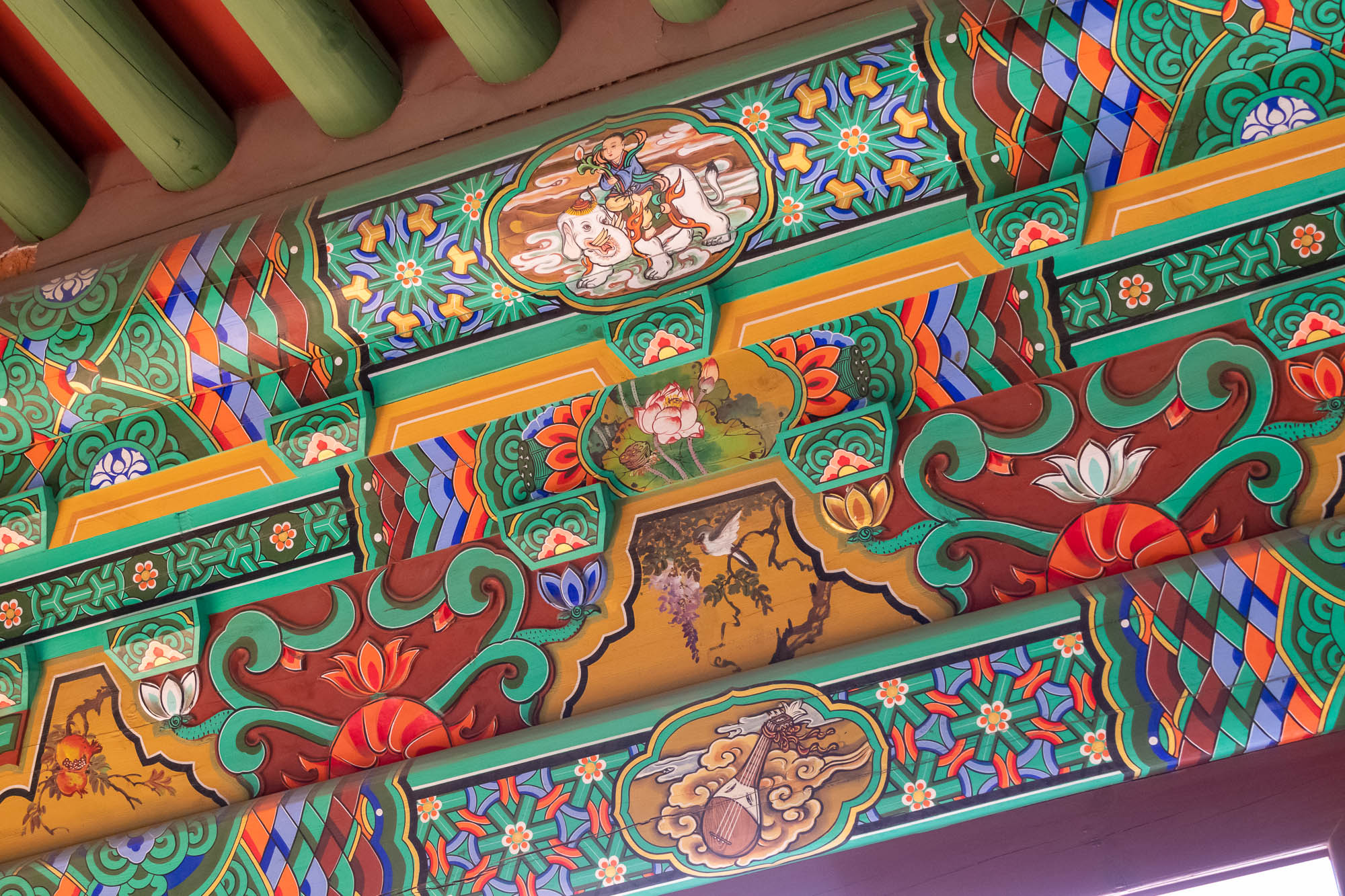 Heute morgen kann ich länger schlafen. Trotzdem bin ich schon um 7Uhr wach. Nachdem ich meinen Rucksack wieder gepackt habe und das einfache Frühstück im Hostel aus Toast, Butter, Käse und Marmelade genossen habe, fahre ich wieder mit dem Bus zu meinem nächsten Sightseeing-Punkt. Nur eine halbe Stunde entfernt liegt direkt am Meer der Naksansan-Tempel. Hinter dem Eingangstor erwartet mich eine große Parkanlage in den Hügeln am Meer. Wunderschöne kleine und große Tempel liegen mit wunderschönen Malereien verziert zwischen Hügeln und kleinen Teichen. Die Schnitzereien an den Tempelgebäuden stellen Drachen da und die vielen Holzbalken und Wände sind mit unzähligen Malereien versehen. Das ist bis  jetzt die schönste Tempelanlage, die ich in Korea gesehen habe. Im Haupttempel sitzen fünf große goldene Buddhas vor denen einige Menschen beten. Eingerahmt sind diese großen goldenen Buddhas von vielen kleinen goldenen Buddhas. Von der Decke hängen hunderte Papier-Laternen dicht an dicht. Ein kleinerer Tempel dieser Anlage liegt direkt an die Felsen gebaut am Meer. Als ich diesen Tempel besuche hält ein Mönch gerade eine Andacht mit buddhistischer Musik und Gesang. Von Außen hört man das Rauschen des Meers unterhalb des Tempels. Eine faszinierende Stimmung! Und dann werde ich noch auf einen Tee eingeladen, denn die Mönche schenken kostenlosen Tee aus. Auf der höchsten Erhebung steht eine etwa 10-12m hohe stehende Buddhafigur und überblickt die gesamte Tempelanlage und schaut entlang der Küste gen Süden. Nicht weit entfernt von diesen wunderschönen Tempeln erstreckt sich ein weitläufiger Sandstrand auf dem gerade Filmaufnahmen laufen.