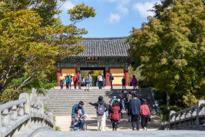 Am Bulguksa Tempel ist einer Menge los. Überall werden Selfie-Sticks ausgestreckt und Gruppenfotos vor dem Tempel und seiner Umgebung gemacht. Ich laufe eigentlich ständig in irgendein Foto hinein. Der Tempel selbst ist ziemlich schön und auch ziemlich bedeutend. Deshalb kommen sicher so viele Menschen hier her.