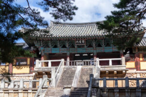 Heute morgen muss ich nach dem Frühstück erst einmal einen Geldautomaten finden. Ich bin blank. Die ersten drei Geldautomaten lehnen meine Karte ab. Dann frage ich an Bahnhof nach einem ATM und werde an den kleinen Supermarkt nebenan verwiesen. Auch dort wird meine Karte abgelehnt. Aber ich bin hartnäckig und versuche es ein weiteres Mal. Zuerst auf „foreign card“ oder zuerst die Sprache auf Englisch umstellen? Keine Ahnung was ich gemacht habe, aber der Automat spukt dann doch ein paar hunderttausend Won aus. Also kann es jetzt losgehen. Ich fahre mit dem Bus zum Bulguksa Tempel und unterhalte mich während der Fahrt mit einem Koreaner, der gerade auf dem Weg zu einer Hochzeitsfeier ist.