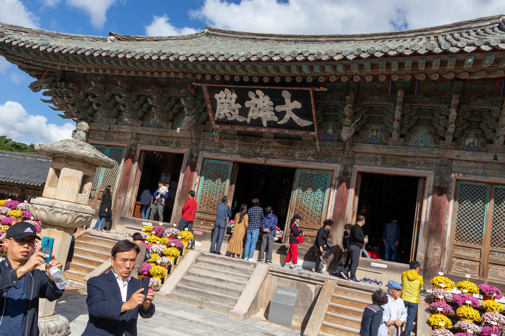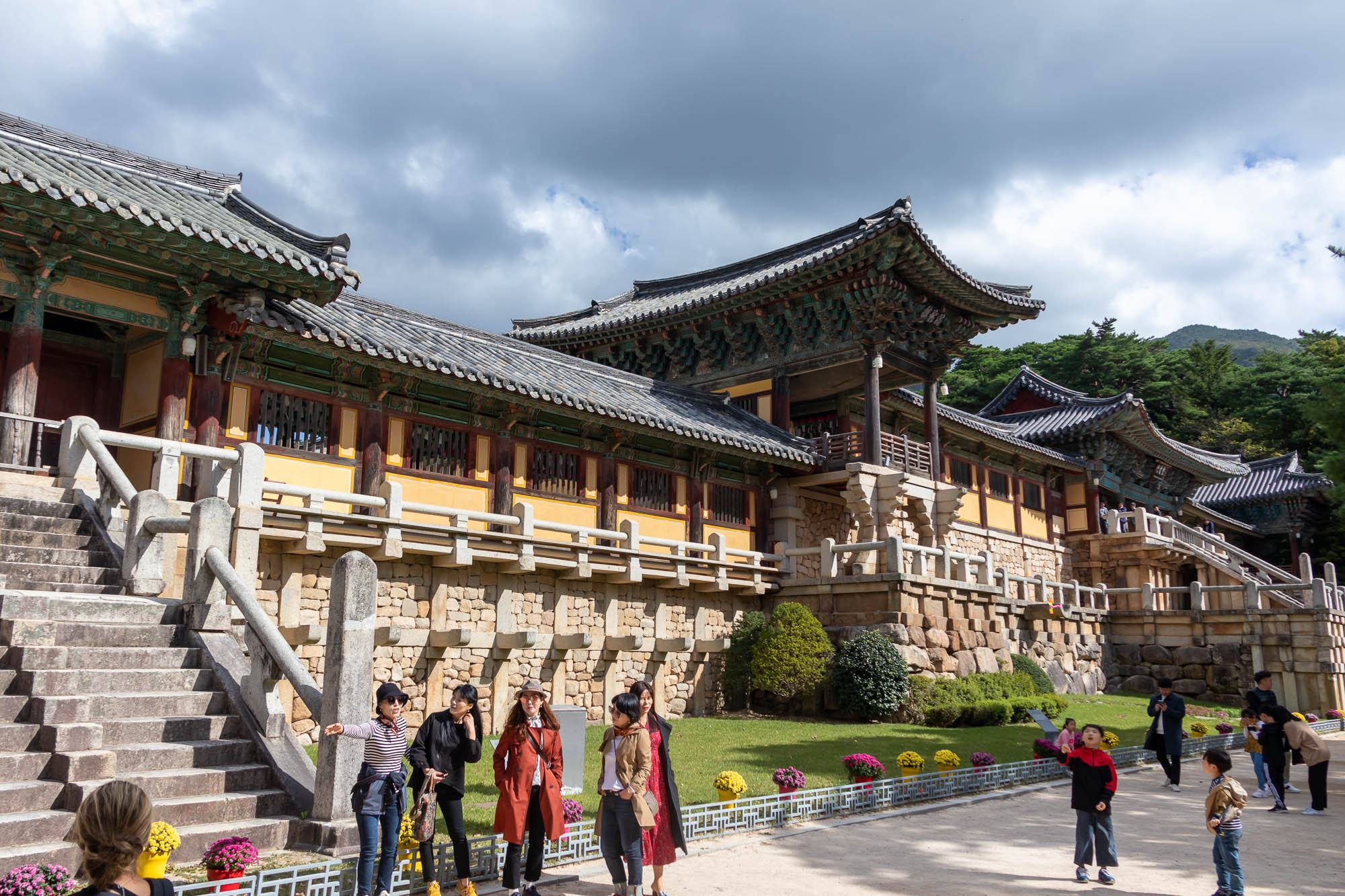 Am Bulguksa Tempel ist einer Menge los. Überall werden Selfie-Sticks ausgestreckt und Gruppenfotos vor dem Tempel und seiner Umgebung gemacht. Ich laufe eigentlich ständig in irgendein Foto hinein. Der Tempel selbst ist ziemlich schön und auch ziemlich bedeutend. Deshalb kommen sicher so viele Menschen hier her.