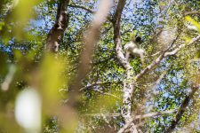 Auf dem Rückweg sehen wir unseren ersten Lemuren. Es sind zwei Sifaka-Lemuren. Diese Art ist berühmt als tanzender Lemur. Aber wir sehen ihn nicht tanzend, sondern hängend in den Bäumen.