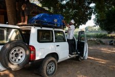 Am anderen Ufer ist der Anleger für unsere Fähre bereits von anderen Fähren zugeparkt und so fahren wir einfach über zwei andere Fähren hinweg. So funktioniert’s in Afrika. Warum schwierig wenn es auch einfach geht. Auf unsrer Weiterfahrt sehen wir immer mehr Baobabs und Fuarisco erzählt uns eine Geschichte zu diesen eigenartigen Bäumen: „vor vielen Jahren hat Gott den Baobab geschaffen als größten Baum um den anderen Bäumen und den anderen Tieren Schatten zu spenden. Aber der Baobab ließ keine anderen Bäume in seiner Nähe zu. Und als Gott wieder in der Nähe war, klagten die anderen Bäume Gott über die Eigenheiten des Baobabs. Und Gott fragte den Baobab: warum machst du sowas? Weil ich der Größte und der Stärkste bin,  sagte der Baobab.