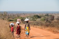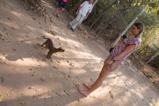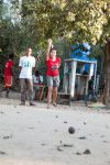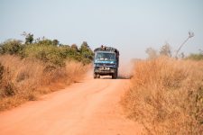 Zum Abschied spielt unser Koch noch ein Lied auf seiner selbstgebauten Okulele in Form eines Fisches. Unser Weg führt uns wieder auf der National Road nach Süden. Die Beschaffenheit der Strasse ist nicht besser als im Norden: eine Buckelpiste. Wir sehen einige Vögel und eine Schlange über die „Straße“ eilen. Erst nach über zwei Stunden begegnen wir dem ersten Auto seit unserer Abfahrt. Verkehr gibt es hier nicht wirklich viel. Dafür aber immer wieder Fußgänger am Wegesrand und jede Menge Kinder die uns zuwinken.