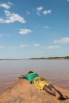 Zum Mittagessen machen wir halt in „Belo sur Tsiribihina“. Der größten Stadt,  die wir seit langem gesehen haben. Hier wartet später auch die Fähre über den Fluss Tsiribihina auf uns. Aber erst einmal geht es ins Restaurant Karibo. Nach der Bestellung unseres MIttagessens verteilt der Restaurant-Chef den Zugang zum WiFi. Meine anderen Mitreisenden loggen sich sofort ein und checken Mails und andere News. Ich nicht. Ich genieße es Offline zu sein. Und das Deutschland zwei Tage zuvor bei der Fußball-Europameisterschaft im Elfmeterschießen gegen Italien gewonnen hat,  hab ich bereits gestern von einem Einheimischen erfahren, der uns durch das Tsingy-Gebirge geführt hat.