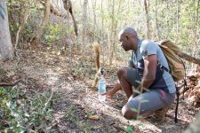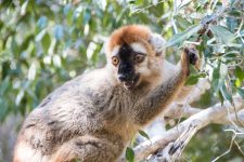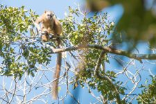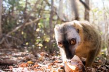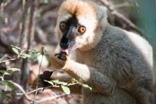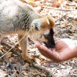 Der Wald ist unheimlich dicht bewachsen aber auch zur Zeit gerade ziemlich vertrocknet. Später treffen wir auf eine große Gruppe brauner Lemuren. Die kleinen Racker stört es überhaupt nicht, dass wir in der Nähe sind und so kommen sie herunter und suchen ihr Futter auf dem Boden. Direkt neben uns und auch zwischen uns. Nur wenige Zentimeter von uns entfernt.  Aber wenn ein auffälliges knacken aus der Nähe ertönt weil jemand auf einen Ast getreten ist, sind die Tierchen mit den langen Büschen Schwänzen sofort auf einem Baum verschwunden und die kleinen Lemuren scannen die Umgebung. Ist die Luft rein,  sind sie sofort wieder bei uns. Und unserem Guide schlecken sie sogar das Wasser aus der Hand. So nah kommt man noch nicht einmal im Zoo den Tieren.